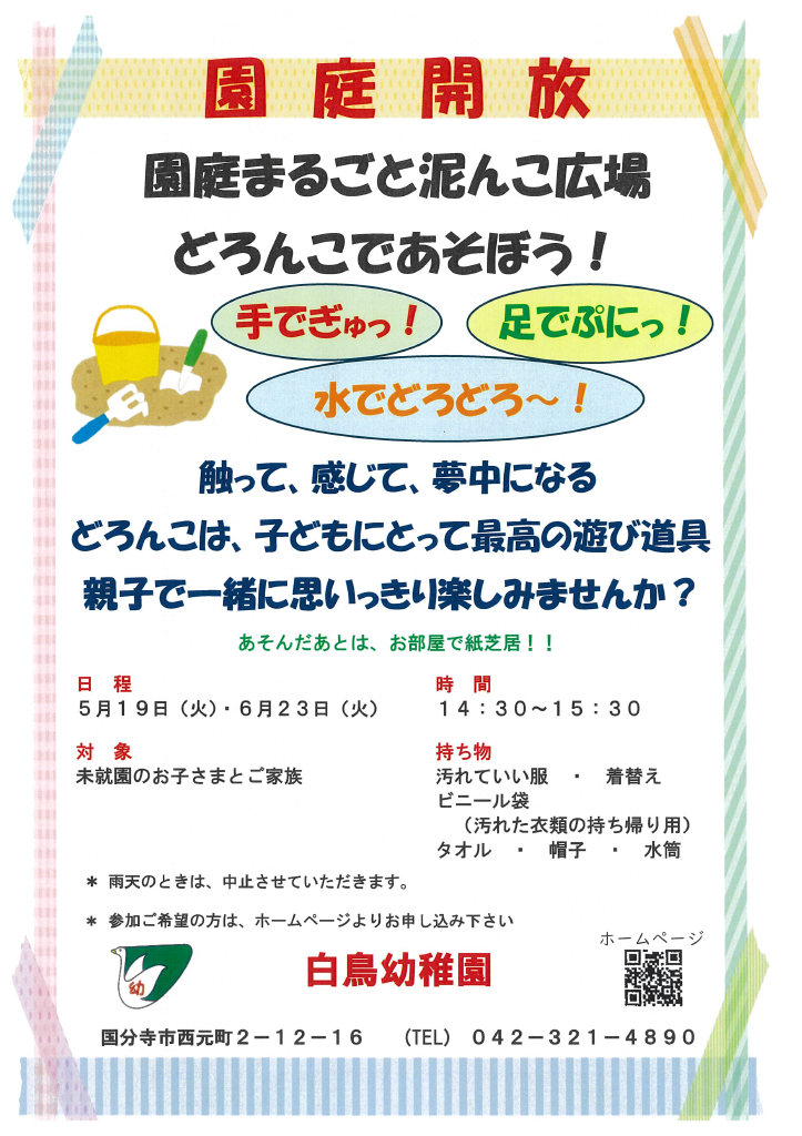 ◇入園前のお子さまを対象とした園庭開放を、5月・6月に行います。